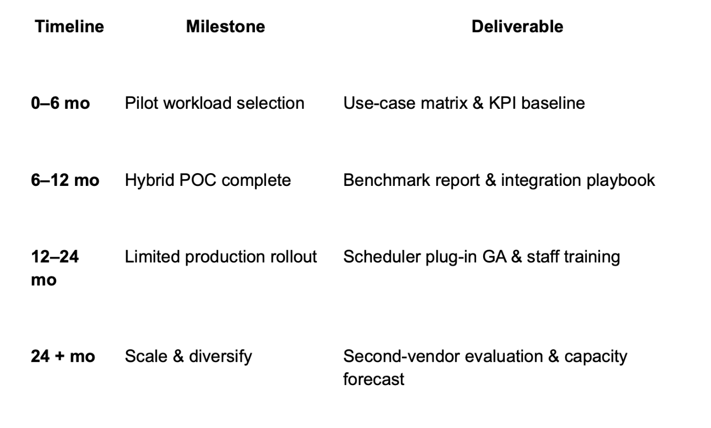 - Phase 3 — Production On-prem QPU cluster; multi-vendor redundancy.